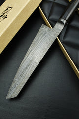 Klinge: Handgeschmiedeter Damast, 63 HRC, 200 mm