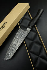 Klinge: Handgeschmiedeter Damast, 63 HRC, 185mm