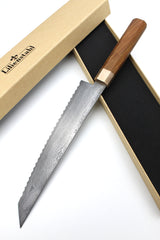 Klinge: Handgeschmiedeter Damast, 63 HRC, 250 mm