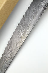 Klinge: Handgeschmiedeter Damast, 63 HRC, 250 mm