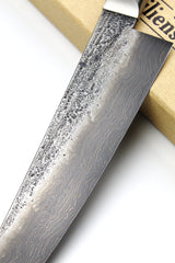 Klinge: Handgeschmiedeter Damast, 63 HRC, 215 mm