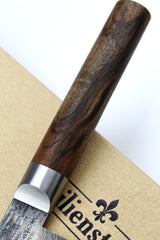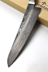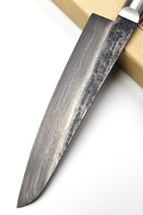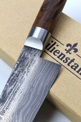 Klinge: Handgeschmiedeter Damast, 63 HRC, 215 mm
