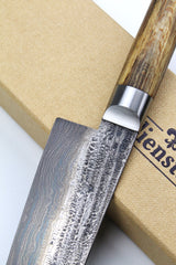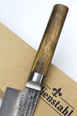 Klinge: Handgeschmiedeter Damast, 63 HRC, 215 mm