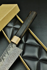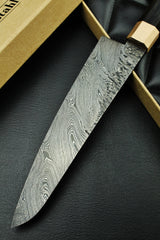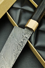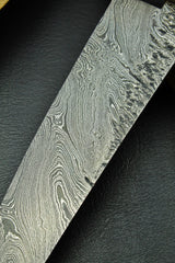 Klinge: Handgeschmiedeter Damast, 63 HRC, 215 mm