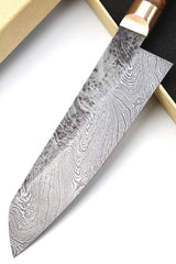 Klinge: Handgeschmiedeter Damast, 63 HRC, 180 mm
