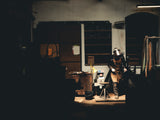 Glänzend durchziehen die Markstrahlen der tausende Jahre alten Mooreiche den Griff des Santokus. Nur der Geruch verrät die natürliche und ökologisch vertretbare Stabilisierung mit Lärchen und Fichtenharz gegen Feuchtigkeit und Gerüche. Die quer satinierte Zinnbronze bildet das Kernstück zwischen der San Mai 3LN Klinge und dem East Style-oktagonal-Griff, ausgeführt als echte Zwinge. Die Diffusionszone zwischen dem Mantelmaterial und der Schneidlage der Klinge erlauben einen Einblick in das traditionelle Schmiedeverfahren.