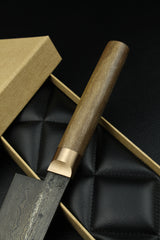 Klinge: Handgeschmiedeter Damast, 63 HRC, 180 mm