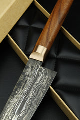 Dies ist ein klassisches Gyuto mit edelster europäischer Ulme.