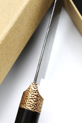 In einigen Fällen so fein, dass das menschliche Auge es kaum erkennen kann. Damaststahl ist nach wie vor das beste und einzigartigste Klingenmaterial. Die technischen Vorteile und der individuelle Charakter entstehen nur durch viele Stunden des Schmiedens.