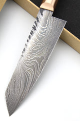 Klinge: Handgeschmiedeter Damast, 63 HRC, 140 mm