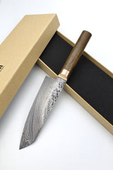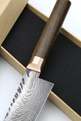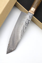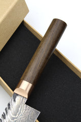 Im Gegensatz zu größeren Santoku-Messern (mit 165–180 mm Klingenlänge) ist das Mini-Santoku ideal für kleinere Hände, kompakte Küchen oder Köche, die ein leichtes, wendiges Messer bevorzugen.