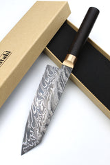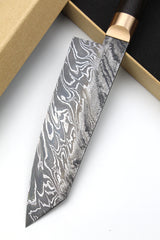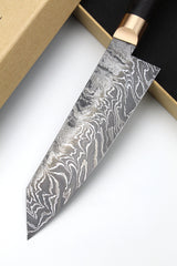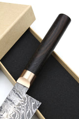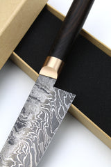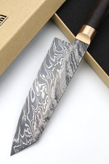 Klinge: Handgeschmiedeter Damast, 63 HRC, 175 mm