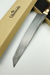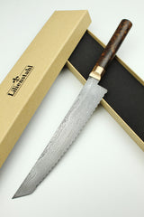 Klinge: Handgeschmiedetes Damaststahl, 63 HRC, 250 mm