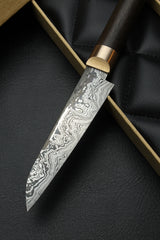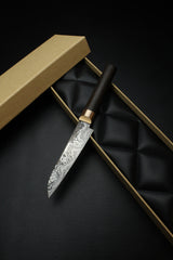 Das Petty ist eine fantastische Ergänzung für Ihre Küche. Es besitzt eine 120 mm lange Klinge mit einer Breite von 25 mm. Ein kleines Messer mit unglaublicher Schärfe und atemberaubender Schönheit. Es ist mit größter Sorgfalt verarbeitet und ergonomisch gestaltet, um auch bei längerer Nutzung höchsten Komfort zu gewährleisten.